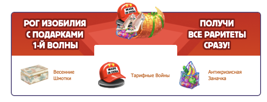 Минирог Изобилия — особый предмет, при открытии которого вы получите один МФ случайного раритета текущей акции из тех, что ещё не собрали максимально! Раритеты под Фонтаном не учитываются. Если вы получили Минирог, а потом собрали все раритеты, открывая подарки, то из него выпадет: Жетон для Слотов или Мёд или Аттестат текущей акции .