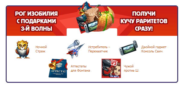 Рог изобилия — это предмет, который содержит в себе все раритеты текущей волны подарков сразу в максимальной модификации и является желанным призом для любого игрока!