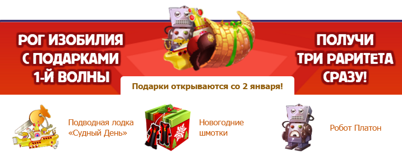 Дарите первые новогодние подарки до 04.01.2016 и с каждой покупкой вы получите от 4 до 100 эскимо. Отдайте эскимо Снегурочке и вы сможете сыграть в суперигру. Каждая суперигра стоит 100 и приближает вас к заветному раритету. Накопи 100% и получи раритеты первого этапа без ожидания возможности открывать подарки! Эти призы будет невозможно выставить на аукцион, не упустите свой шанс получить раритет!